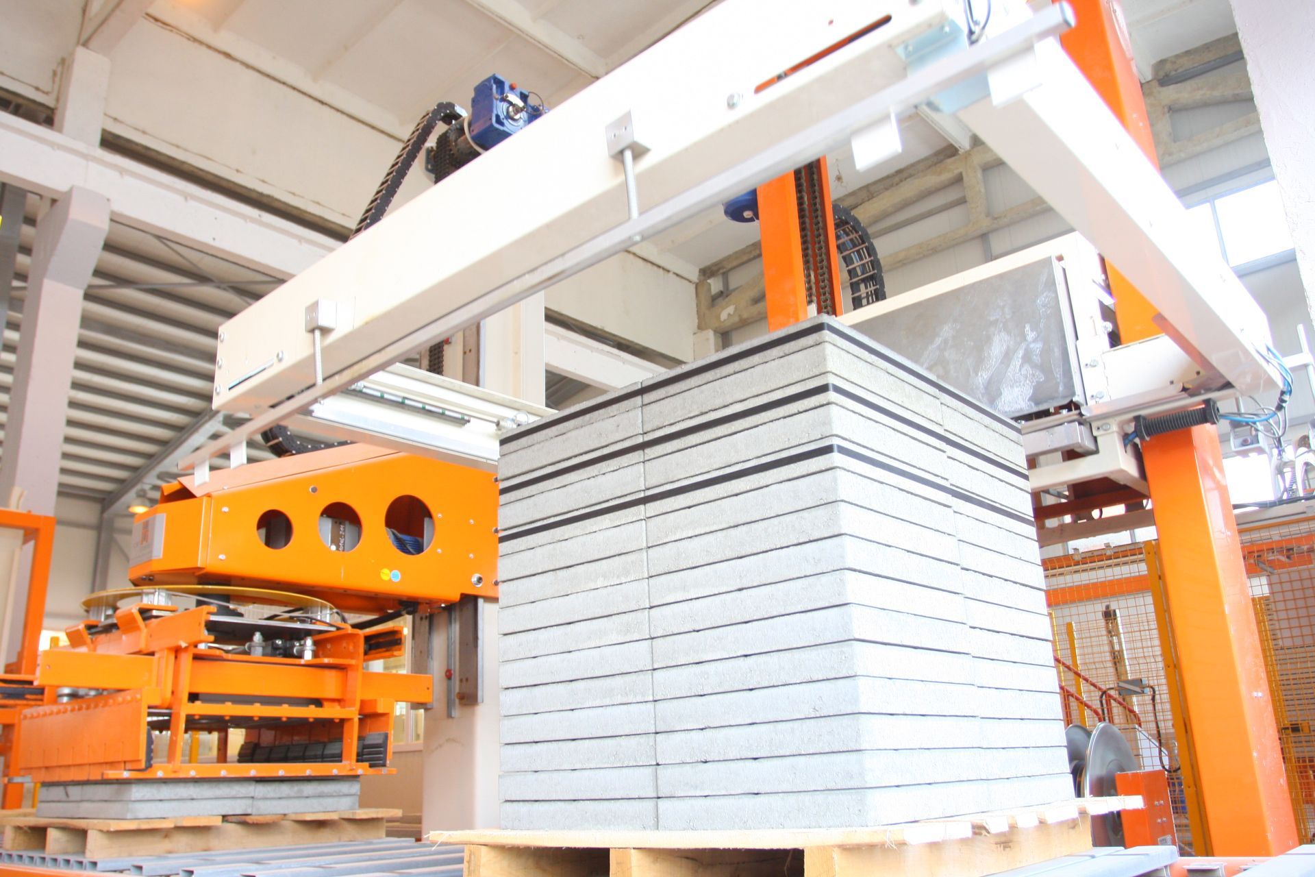 Производствената линия включва системи за зареждане, дозиращи системи, смесители с вместимост 0,250м3 и 1,5м3, транспортьори на готова бетонна смес, линия вибропреса, автоматична транспортна система до камера за изсушаване на бетоновите елементи, палетизиращ робот и пакетираща линия. Вибропресата FI 1200 на Form Impianti, която е най-голямата в своя клас, с производителност на настилки до 1 500 кв.м, кухи блокове до 15 000 бр. и бордюри до 7 000 бр. за осем работни часа. В завода е възможно да се произвеждат изделия с дължина до 1050мм, широчина до 1050мм и височина от 40 до 400мм. Те могат да бъдат както със стандартна гладка повърхност, а същота така и с измита релефна повърност. Благодарение на инсталацията за оцветяване с течни бои, позволяваща смесване на безброй комбинации, произвежданите изделия могат да се оцветят в над 1 млн. цвята. Друг вариянт на оцветяване са така наречените мултиколор преливащи се. При тези изделия горния износоустойчив слой е изработен от два цвята преливащи един в друг.